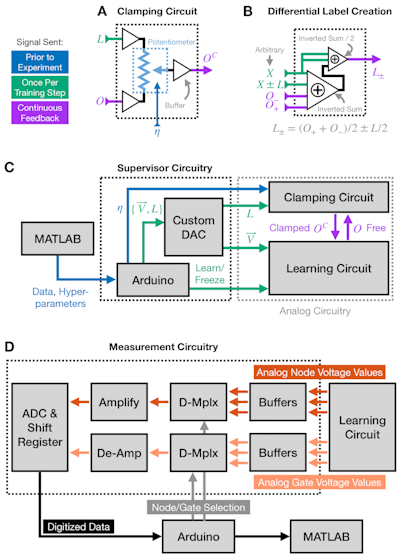 "Standard deep learning algorithms require differentiating large non-linear networks, a process that is slow and power-hungry," the researchers explain. "Electronic learning metamaterials offer potentially fast, efficient, and fault-tolerant hardware for analog machine learning, but existing implementations are linear, severely limiting their capabilities. These systems differ significantly from artificial neural networks as well as the brain, so the feasibility and utility of incorporating non-linear elements have not been explored."